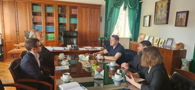 Состоялась встреча временно исполняющего обязанности председателя Синодального отдела по благотворительности протоиерея Михаила Потокина с заместителем руководителя Федерального медико-биологического агентства (ФМБА) Михаилом Ратмановым. Участники встречи обсудили вопросы медицинской помощи пострадавшим в зоне конфликта.